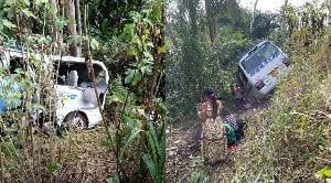 Galaxy voyages, un bus de transport routier connu pour ses trajets Yaoundé-Ebolowa s’est retrouvé nez a nez avec un gros porteur non loin de la ville de Mbalmayo. Selon les sources, le bus a tenté de dépasser en pleine vitesse le véhicule qui se trouvait devant lui. Mais dans sa course malencontreuse, il croise un gros porteur qui roulait en sens inverse. Le drame est arrivé lorsqu’il a tenté d’échapper à son collègue chauffeur d’en face mais sans suite favorable. Pneus crevés, c’est le bus de voyage Galaxy qui se retrouve dans un ravin où il a terminé sa chute. Le bilan provisoire fait état de 5 morts et de plusieurs blessés graves.