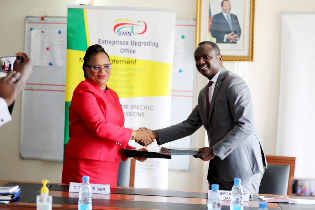Une convention de partenariat y relative a été signée jeudi dernier à Yaoundé, entre Chantal Elombat Mbedey, directrice du Bureau de mise à niveau (Bmn) et Youssoufa Bouba, directeur général adjoint d’Afriland first Bank (AfB).