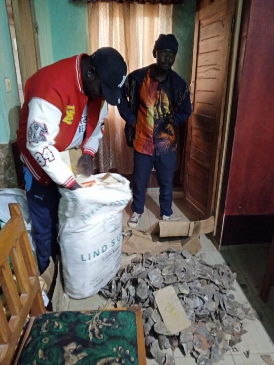 Les trafiquants sont arrivés sur le lieu de la transaction à moto, l’un au guidon, l’autre serrant entre ses bras deux sacs camouflés dans des emballages de céréales. À l’intérieur, les agents de la délégation départementale des forêts et de la faune du Djerem ont découvert près de 90 kg d’écailles de pangolins, soit l’équivalent d’environ 35 pangolins tués. L’opération a été menée en collaboration avec la compagnie de gendarmerie de Tibati, avec l’appui technique de l’ONG spécialisée dans la lutte contre le trafic d’espèces protégées, The Last Great Ape Organisation (LAGA). Selon des sources proches de l’enquête, les suspects s’apprêtaient à quitter Tibati pour écouler leur butin à Ngaoundéré, un carrefour stratégique pour les réseaux de trafic faunique. L’un des présumés trafiquants serait marchand de viande de brousse, l’autre mécanicien, impliqué dans plusieurs activités illégales liées à la faune. Ils auraient mobilisé un réseau de braconniers opérant dans les villages alentour pour collecter les écailles.