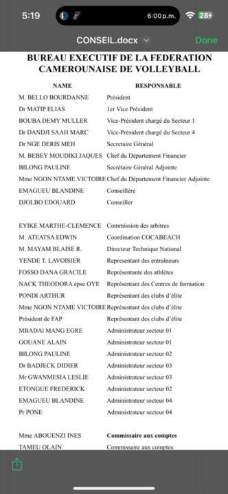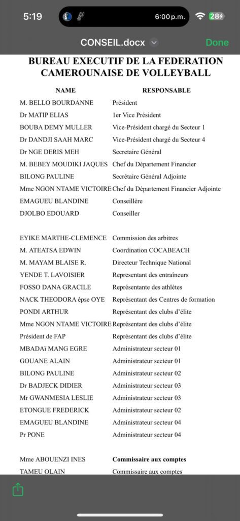 L’assemblée générale de la Fédération camerounaise de volleyball (Fecavolley) a reconduit Bello Bourdanne à sa présidence, ce 7 février 2026 à Yaoundé. 61 voix sur les 68 suffrages valablement exprimés ont ainsi permis au président sortant de bénéficier de quatre nouvelles années de confiance à la tête de la Fécavolley. « Le volleyball camerounais est une famille. Nous manquons de ressources et les divisions ne servent à rien », a lancé le président réélu. Regrettant que l’ancien exécutif dirigé par Julien Serge Abouem continue d’entretenir polémiques et divisions au sein du volleyball camerounais. Bénéficiant du soutien de certaines autorités administratives. Et le processus électoral a été émaillé de fortes perturbations. Les autorités administratives ayant très souvent empêché la tenue des assemblées générales électives aux niveaux régionaux. Et même cette dernière étape ne s’est tenue que grâce à une feinte organisée contre ces autres adversaires coiffées de la casquette de l’administration, pourtant chargée de veiller à la bonne tenue des manifestations, et non à prendre position dans des conflits internes aux organisations. Aboubakar Garba le sous-préfet de Yaoundé II, avait signé un arrêté interdisant la tenue de cette assemblée générale élective, évoquant un défaut de déclaration préalable et des risques de troubles à l’ordre public. Les travaux se sont tenus finalement au siège du Conseil économique et social.