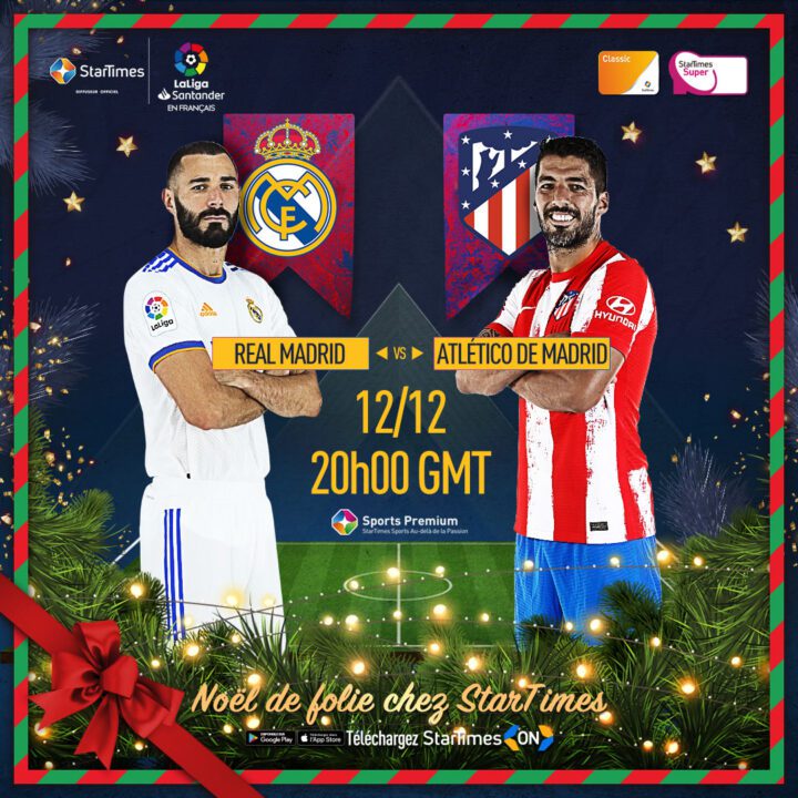 Les fans de football de toute l’Afrique pourront suivre le choc Real Madrid-Atlético Madrid en direct, en HD et en français sur la chaîne Sports Premium de StarTimes.