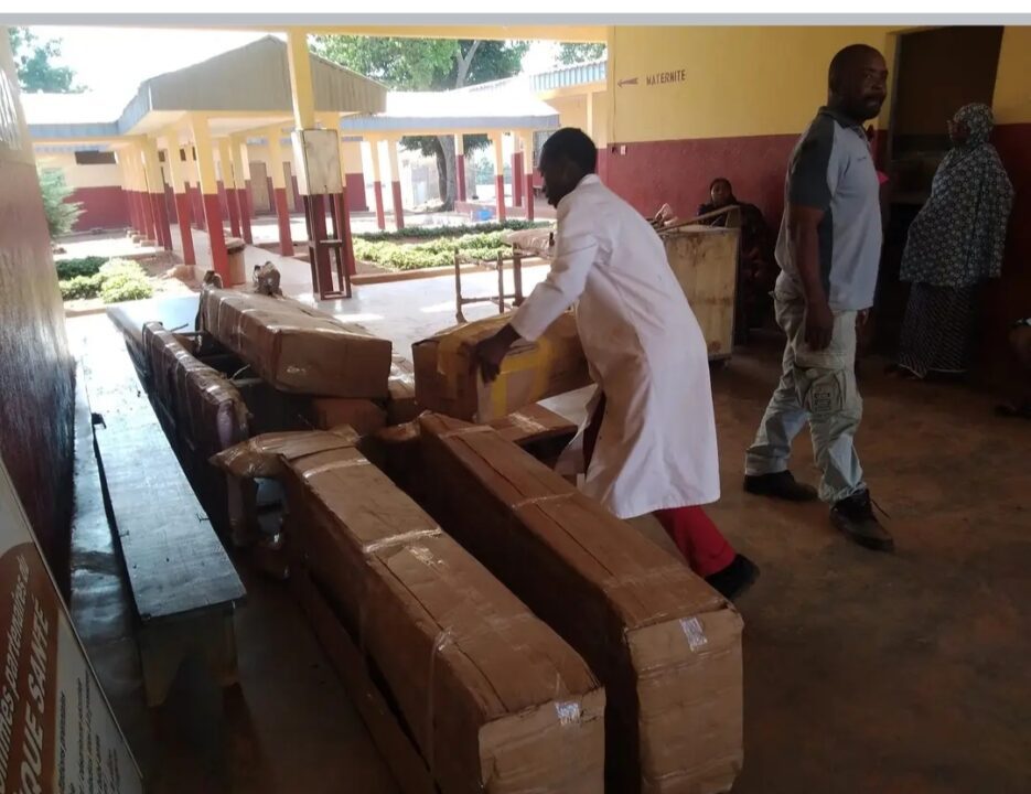 Des lits d’hospitalisation, une table d’opération, une table d’accouchement, une table d’examen gynécologique, des Dopplers foetal, des paravents avec quatre plis, des tensiomètres électronique, un microscope binoculaire optique, une lampe chauffante et un kit de réanimation pour nouveau né, une lampe scialytique, un chariot brancard et des kits de petite chirurgie est les matériels médical flambant neuf qui viennent alléger les souffrances les personnes malades.