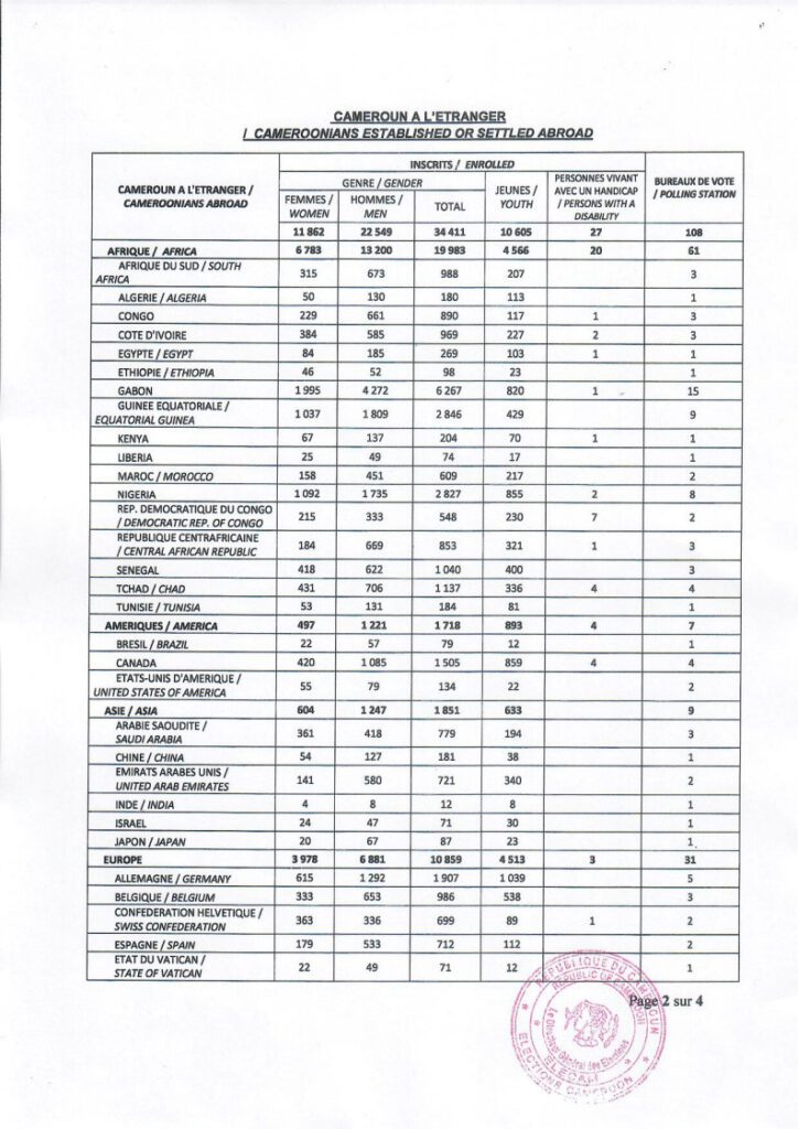 Le Cameroun a rendez-vous avec l’histoire. L’élection du président de la République est prévue demain. Le corps électoral est convoqué pour élire le successeur de Paul Biya. En tout, ce sont 8 010 464 électeurs dont 3 716 567 femmes et 4 293 897 hommes qui sont ainsi convoqués dans les urnes parmi lesquels 34 411 électeurs établis à l’étranger, répartis dans 31 653 bureaux de vote créés sur l’ensemble du territoire national et à l’étranger (108 dans 36 pays de tous les continents), pour départager 12 candidats dont une seule femme, Patricia Tomaïno Ndam Njoya. Après la confirmation des listes le 3 août dernier par le Conseil constitutionnel, Caxton Ateki du Parti de l’Alliance libérale (PAL) et Akéré Muna du parti Univers se sont ralliés à Bello Bouba Maïgari de l’Union nationale pour la démocratie et le progrès (Undp) ; mais le ministre de l’Administration territoriale (Minat) a rappelé que tous les 12 candidats retenus demeurent en course. En indiquant que les désistements devaient se faire avant l’impression des bulletins de vote. Alors les bulletins des 12 candidats officiels seront présents dans tous les bureaux de vote, et valablement comptés.