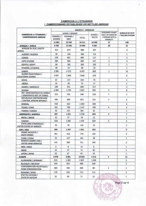 Le Cameroun a rendez-vous avec l’histoire. L’élection du président de la République est prévue demain. Le corps électoral est convoqué pour élire le successeur de Paul Biya. En tout, ce sont 8 010 464 électeurs dont 3 716 567 femmes et 4 293 897 hommes qui sont ainsi convoqués dans les urnes parmi lesquels 34 411 électeurs établis à l’étranger, répartis dans 31 653 bureaux de vote créés sur l’ensemble du territoire national et à l’étranger (108 dans 36 pays de tous les continents), pour départager 12 candidats dont une seule femme, Patricia Tomaïno Ndam Njoya. Après la confirmation des listes le 3 août dernier par le Conseil constitutionnel, Caxton Ateki du Parti de l’Alliance libérale (PAL) et Akéré Muna du parti Univers se sont ralliés à Bello Bouba Maïgari de l’Union nationale pour la démocratie et le progrès (Undp) ; mais le ministre de l’Administration territoriale (Minat) a rappelé que tous les 12 candidats retenus demeurent en course. En indiquant que les désistements devaient se faire avant l’impression des bulletins de vote. Alors les bulletins des 12 candidats officiels seront présents dans tous les bureaux de vote, et valablement comptés.