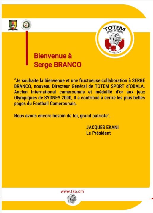 Le débats sur le surnaturel d’où est parti le nom TOTEM d’Obala est secondaire à ma mission car si je peux reconnaître que nous sommes en Afrique et en pays bantou, à la base, des noms des clubs pareils ont des significations précises. Je vais me renseigner auprès de mon PCA pour avoir une idée du nom TOTEM d’Obala.