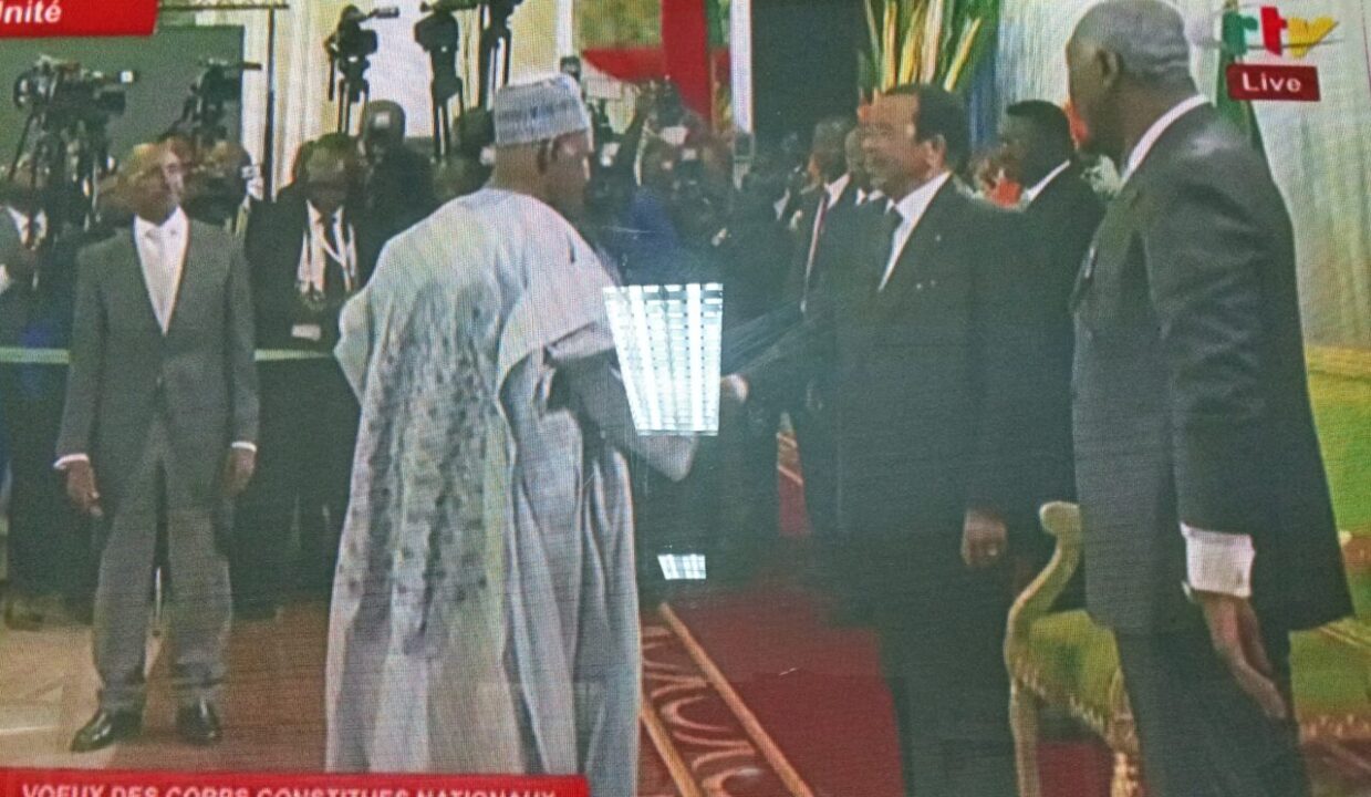 Paul Biya a reçu les vœux du corps diplomatique et des corps constitués nationaux ce 8 janvier à Yaoundé. Rare moment où Paul Biya a l’occasion de voir et serrer la main à nombre de ses collaborateurs, c’est aussi l’occasion pour certains de démontrer leur proximité avec un président devenu de plus en plus rare et mystérieux. Les conseils de ministres étant devenus des plus rares, voire inexistants. Et pourtant Marcel Niat Njifenji et Cavaye Yeguié Djibril, présidents du sénat et de l’assemblée nationale (PAN), 2ème et 3ème personnalités de la République, n’y étaient pas. S’il est un secret de polichinelle que le président du sénat est malade, celui de l’assemblée nationale, lui, fait quelques infidélités à la cohérence de son discours comme on l’a constaté officiellement lors du meeting de Paul Biya, candidat à la présidentielle 2025, en octobre dernier à Maroua. Officiellement, rien n’a été dit de ces deux absences, et surtout de celle du PAN. Toujours est-il qu’un communiqué du secrétariat général de l’assemblée nationale, annonce les vœux dans cette institution demain 9 janvier 2026. Avec une indication particulière que la cérémonie se déroulera sous un « format court ». Le PAN ne recevra que les vœux des députés et du personnel de l’assemblée nationale, jusqu’au rang de directeur.